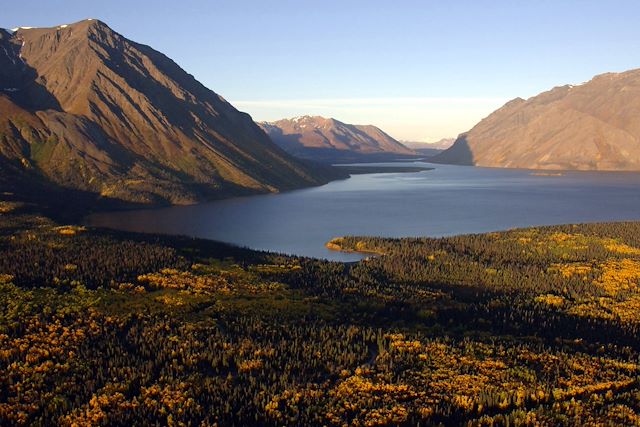 Nous traversons à nouveau la frontière pour quitter l'Alaska et rejoindre le Yukon en direction de l'imposant parc national de Kluane. Les paysages magnifiques défilent sous vos yeux : plaines, vallées glaciaires, rivières et lacs bordés par les sommets du parc qui abrite le plus haut sommet du Canada, le mont Logan (5959m). A Sheep Mountain, nous nous arrêtons au centre d'information, où, avec un peu de chance, nous pourrons observer des mouflons de Dall. Il est possible (en option) de participer à un survol du parc en avion de brousse qui permet d'admirer les montagnes entourées d'immenses glaciers. C’est une spectaculaire opportunité à saisir en cas de beau temps (à réserver et régler sur place).