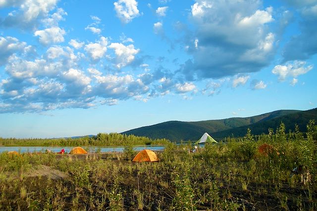 Pendant la descente en canoë et à Carmacks, les nuits sont sous tente de 2 personnes, en camping sauvage en bordure de la rivière. Il n'y aura pas de toilettes ni d'électricité (sauf à Carmacks où vous aurez accès aux toilettes et à l’électricité).