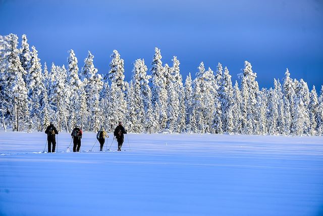 En hiver, le pays se transforme pour devenir un royaume de neige parsemé de lacs et de rivières gelés. Nos guides vous feront découvrir la magie de la nuit polaire au cours de randonnées à ski nordique ou en traîneau à chiens. En autonomie, une aventure vous attend pour apprendre à conduire votre attelage et vivre une expédition dans le Grand Nord.