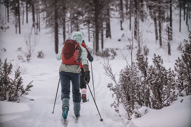 Au sud du lac Inari se trouve le point de départ parfait pour une semaine complète de ski de fond dans un environnement préservé : le parc national d’Urho Kekkonen. Logés aux portes du parc, vous allez pouvoir skier chaque jour sur des itinéraires différents. Ici, le terrain est vallonné, vous êtes entourés de 3 collines qui culminent à 500 mètres, où serpentent plus de 200 kilomètres de pistes de ski. Que vous soyez skieur de fond classique ou plutôt skating, la plupart des pistes sont aménagées pour les deux pratiques.