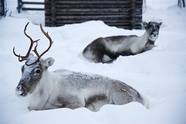 Après un transfert en voiture à travers les paysages enneigés de la région, vous irez à la rencontre d´éleveurs de rennes semi domestiques. Les éleveurs nous raconteront leur vie au rythme de la vie des rennes et vous profiterez d'une balade en traineau tiré par les rennes. Une opportunité de voir et toucher ces animaux mythiques de la Laponie.