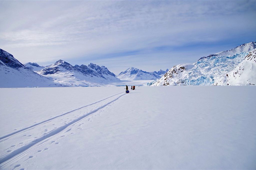 Nous partons de l'île de Kulusuk pour rejoindre celle de Salissalik et explorer les environs. Nous progressons sur la banquise au milieu des icebergs, et approchons les fronts de glaciers. Une véritable immersion en territoire polaire. Le soir venu, nous montons le camp au milieu de nulle part et passons la soirée, si le ciel est clair, baignés par la lumière des aurores boréales. Notre but n'est pas de couvrir une grande distance, mais de profiter de tous les aspects de ce type de voyage. Vous apprendrez à monter votre camp et à vivre au cœur de l'hiver arctique, à progresser en ski nordique sur la banquise et à lire ce terrain si vaste et si beau. L'esprit d'équipe est essentiel sur ce type de voyage. Il faudra participer aux tâches quotidiennes des bivouacs (montage et démontage de tente, faire de l'eau, etc...).