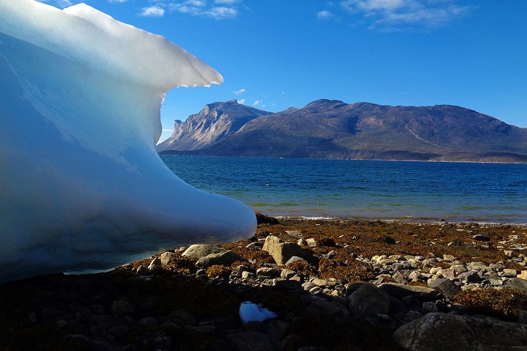 Randonnée accompagnée vers un ancien site inuit et le point de vue vers le fjord de glace avec ses icebergs et le glacier d’Ilulissat au fond du fjord, quelque 65 km à l'est. Retour à Ilimanaq en bateau.