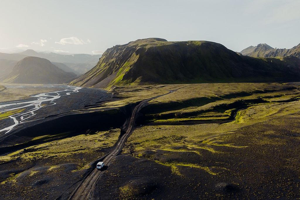 Entre côtes et déserts, glace et feu, fjords encaissés et plateaux pierreux, cette itinérance en véhicule 4x4 est l'occasion de découvrir les paysages majeurs de l'île, et leur grande variété. Des randonnées viennent ponctuer ce voyage et vous offrent une liberté totale qui correspond tant à ce pays. La région de Landmannalaugar, le parc national de Skaftafell et celui de Jökulsárgljúfur, la région de Mývatn et enfin le massif de Kerlingarfjöll sont les sites de randonnée les plus mémorables de ce périple. Vous pouvez prolonger votre voyage par des extensions sur les îles Vestmann, Askja ou les fjords de l’ouest.