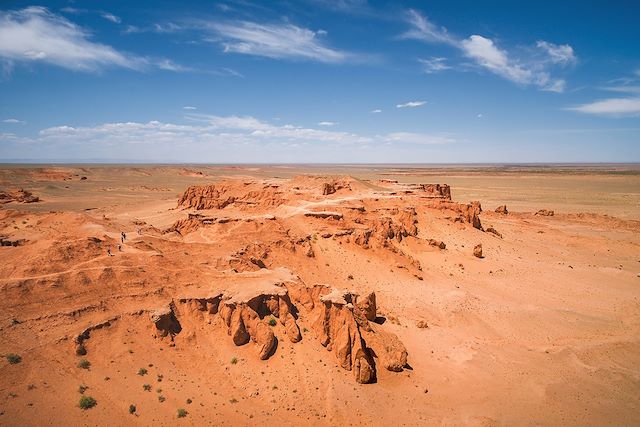 Nous sillonnons à pied, sans aucun trajet routier pendant 9 jours, le parc national de Terelj : terres sans clôture, vallons à l’infini, forêts alpines... et passons 2 jours en immersion avec une famille nomade.