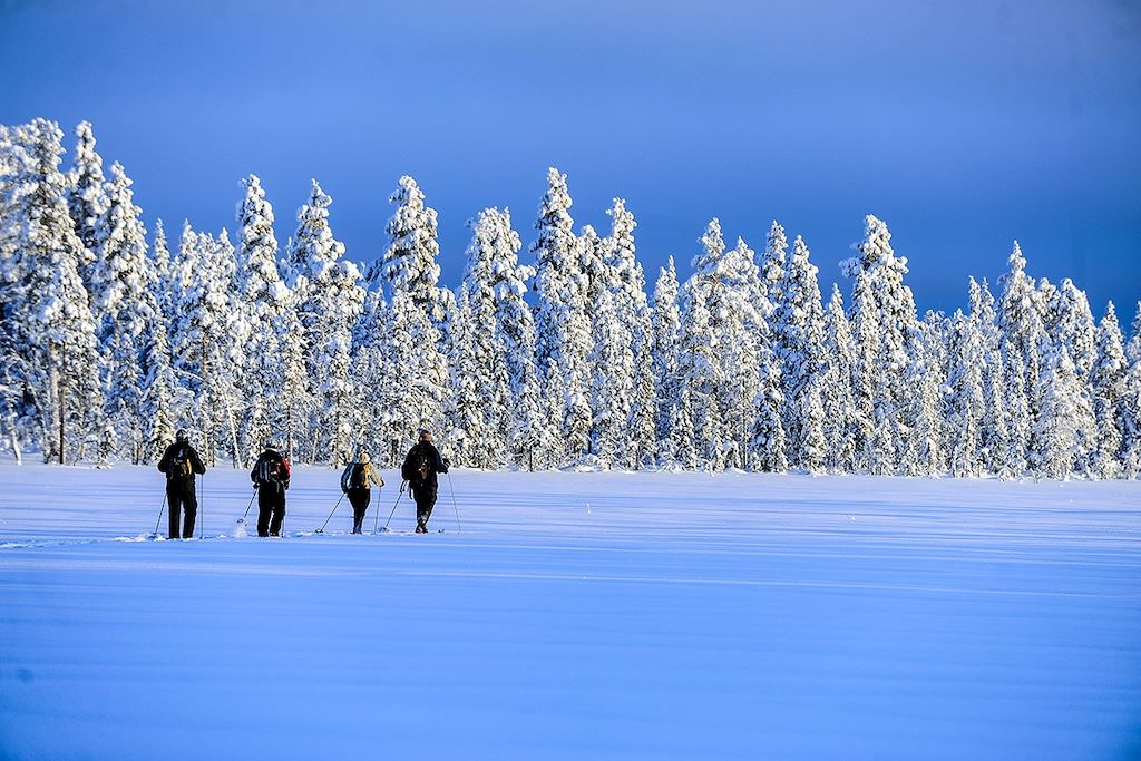 Nous vous invitons à nous rejoindre au cœur de la nature sauvage et enneigée de Laponie, sous le spectacle des aurores boréales. Vous explorez la région d'une manière douce à travers des randonnées en raquettes ou à ski, en traîneau à chiens, ou encore avec un éleveur de rennes same.